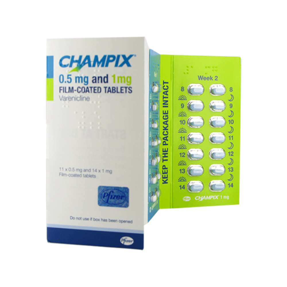 - Champix 0,5 mg cena: 84,38 € - 2058,43 €.